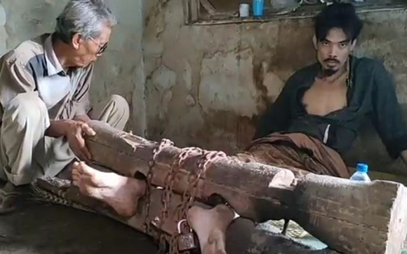 Pihak keluarga memasung Mashadi di dalam gudang berukuran 2×2 meter karena membahayakan warga di sekitar. Pasalnya, Mashadi kerap merusak barang-barang di rumah saat mengamuk.