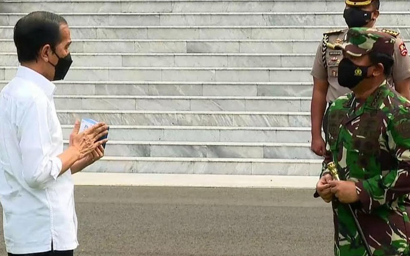 JMNChannel.com | Panglima TNI Marsekal TNI Hadi Tjahjanto, mendampingi Presiden Joko Widodo dalam peluncuran paket obat dan vitamin untuk warga yang menjalani isolasi mandiri (isoman) karena terpapar Virus Covid-19, bertempat di Istana Merdeka, Jakarta, Kamis (15/7/2021).
