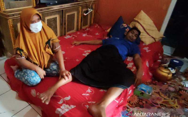 “Usai muntah, ada bintik-bintik merah muncul di sekujur tubuh termasuk di kepala. Masuk hari ketiga, kaki kanan tidak bisa digerakkan, sehingga saya dibawa ke puskesmas dan selanjutnya dirujuk ke rumah sakit, ” kata Solihin.
