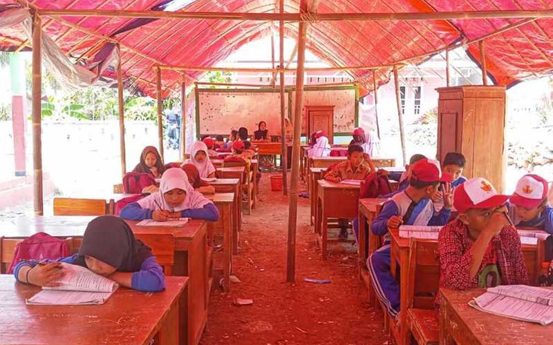 Sudah Lima Bulan, Puluhan Siswa SDN di Sukabumi Belajar di Tenda Darurat