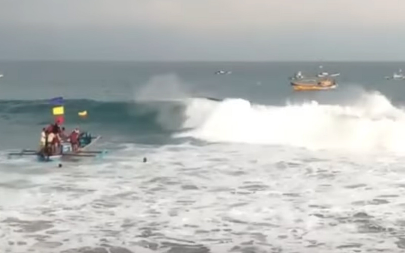 Sebelum terbalik, perahu sempat terombang ambing, sampai akhirnya terbalik dihantam gelombang tinggi.