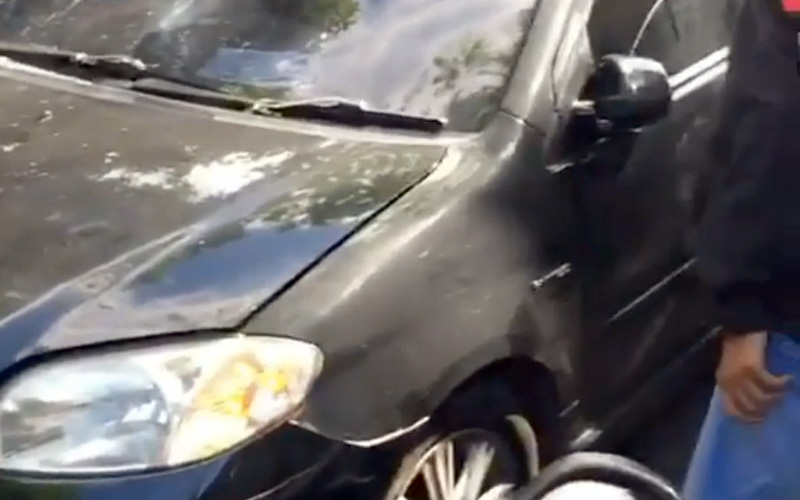 Mobil hitam tersebut diduga melakukan tabrak lari terhadap seorang pengendara sepeda motor. Mobil hitam tersebut sempat menyeret satu unit motor dari Jalan Logam hingga Jalan Margacinta.